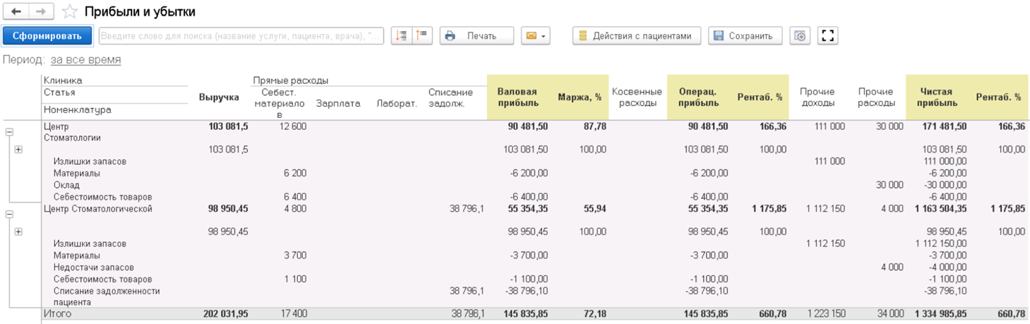Контуры, которые автоматизирует 1С: Медицина Стоматология: