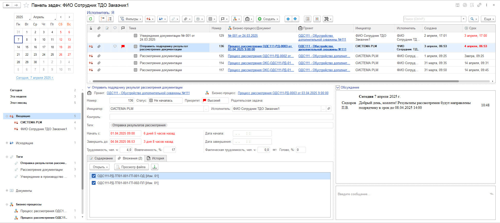 Входящие и исходящие письма также связываются с документацией дерева проектов. Система позволяет формировать PDF файл исходящего письма и выполнять его согласование.