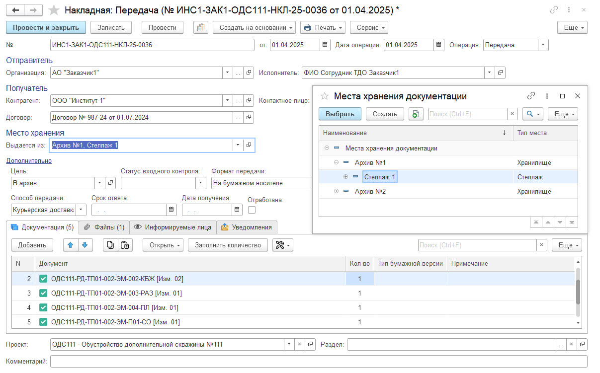 С помощью накладных (TRM) происходит регистрация факта движения документации в рамках процессов: получение, передача, возврат и др.