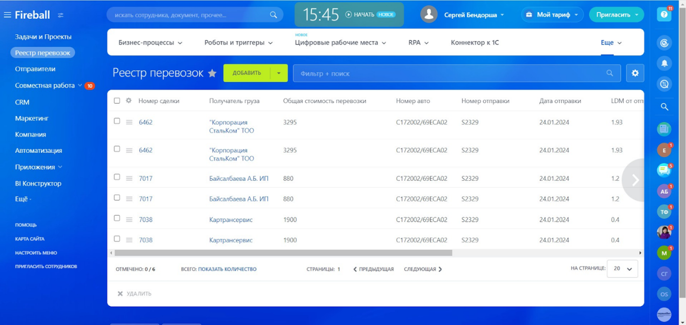 До автоматизации в компании отсутствовал централизованный реестр перевозчиков, что время от времени приводило к потерям данных и затрудняло контроль качества обслуживания. Также сотрудники испытывали неудобства в электронной комплектации грузов: чтобы заполнить транспортное средство, сделки приходилось объединять вручную, что значительно снижало скорость логистики. Нумерация сделок сотрудниками также производилась самостоятельно, что усложняло учёт грузов. Кроме того, компании не хватало системы формирования отчётов, которая позволяла бы получить детализированную аналитику по сделкам и взаимодействиям с перевозчиками. С запросом на качественные IT-перемены дирекция Fireball обратилась в костанайский офис «Первого Бита».