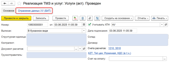 - Всегда связан с регламентированным документом (например, реализация, платеж) как дополнительная вкладка.