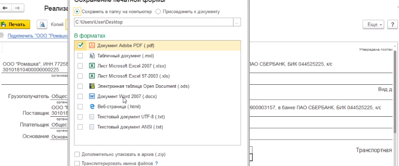 Предварительно выбрав формат, в котором мы будем делать сохранение. Это может быть документ word, либо excel, либо pdf, как в нашем случае.