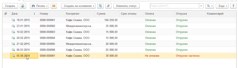 Если у нас в программе уже был сформирован счет покупателю, то документ реализации товаров для экономии времени мы можем создавать на основании этого выставленного счета.